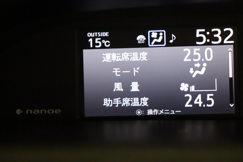 インパネ中央に配置されたマルチインフォメーションディスプレイは視認性が良く、車内が明るい昼間でもしっかりと表示が確認できます。助手席側からも確認でき情報の共有が出来ますよ。