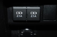 USBポートが装備されています。iPhoneやスマートフォンの充電など、車内にあると便利なアイテムのひとつですね! 電源が複数あるとコードを差替える面倒もなく楽ですよ。