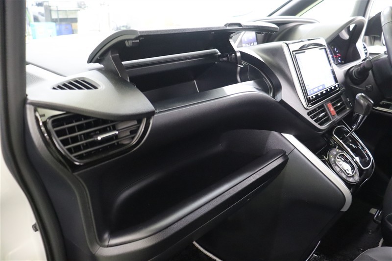 助手席前にはすぐに取り出したいものを置くのに便利なオープントレイを備えています。アッパートレイはリッドが大きく開き使いやすい収納です。リッドがあるので埃もたまりにくく、中身が見えないのも良いですね。