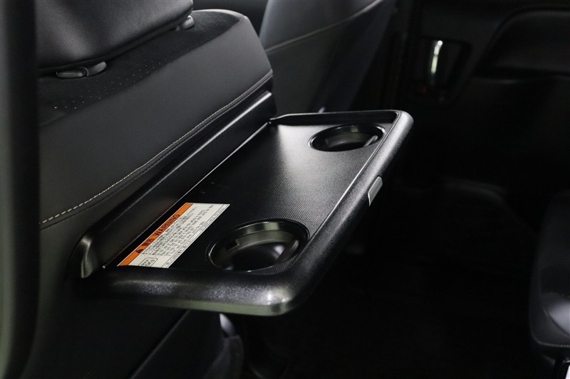 2列目のシート間にもドリンクホルダー付のサイドテーブルが装備されています。使わない時は格納出来るので邪魔になりません。
