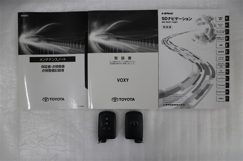 メンテナンスノート、取扱説明書です。メンテナンスノートにはその車の整備記録が事細やかに記録されています。車の履歴が判るとても重要な物です。車検証と一緒に大切に保管してくださいね!