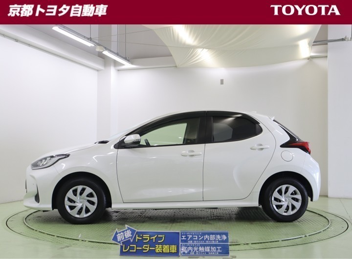 低燃費で走りも爽快な【ヤリス】ハイブリッド。ボリュームのある丸みが斬新で、艶やかなフォルムです。小回りもきいて、狭い道でもスイスイ走れます。