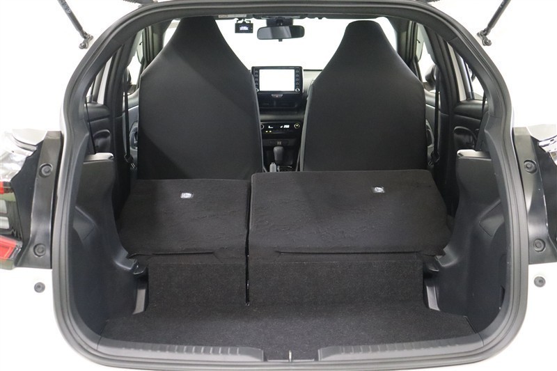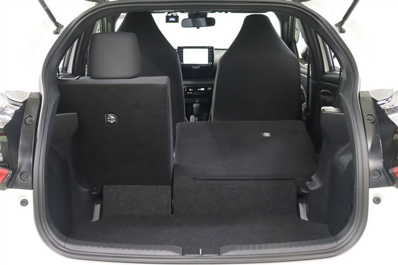 ヤリスはバックドアの開閉時の張り出しが少ないため、狭い場所でも開閉しやすくなっています。コンパクトに見えるラゲッジスペースですが、開口部が大きく開くので荷物が載せやすく、使いやすいスペースです。