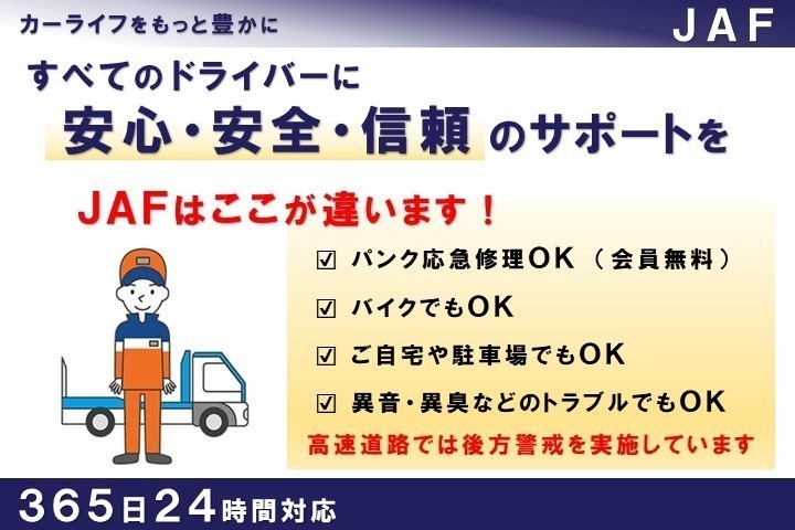 自動車保険にプラスの安心「JAF」をおススメしています。車のトラブルはもちろん、日常的に使える会員優待サービスも見逃せません!ランチやお買い物などの時に嬉しい優待が充実しているのも魅力ですよ。