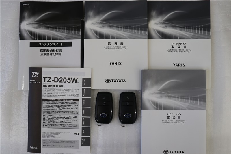 メンテナンスノート、取扱説明書です。メンテナンスノートにはその車の整備記録が事細やかに記録されています。車の履歴が判るとても重要な物です。車検証と一緒に大切に保管してくださいね!