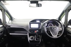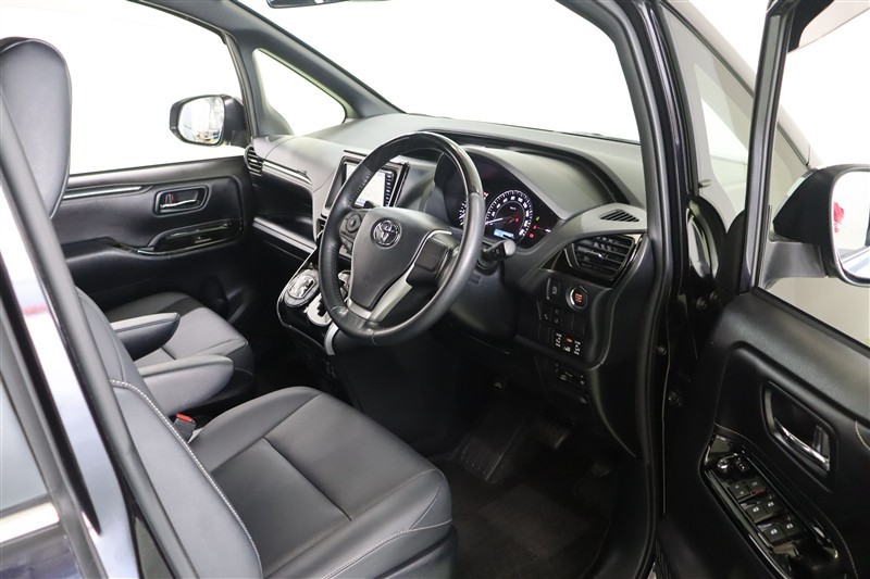 黒が基調のクールなデザイン。インパネがフラットで広々とした視界と開放感あるステアリング廻りです。助手席側までボンネットフードを見渡せるので、狭い道でも車幅の感覚がつかみやすく運転しやすいですよ。