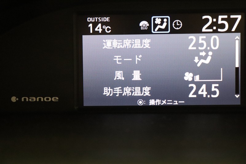デザイン性の高いパネルのエアコンは左右個別の設定が出来ます。場所や個人の体感による温度差も解消できて快適です。ナノイー搭載車ですので、肌や髪に優しいナノイーが室内を爽やかな空気環境にしてくれます。