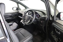 縦基調のフロントグリルが特徴の【エスクァイア】8人乗りです。猛々しい外観でありながらステップが低く、子供からお年寄りまで乗り降りしやすい設計の優しさが魅力です。