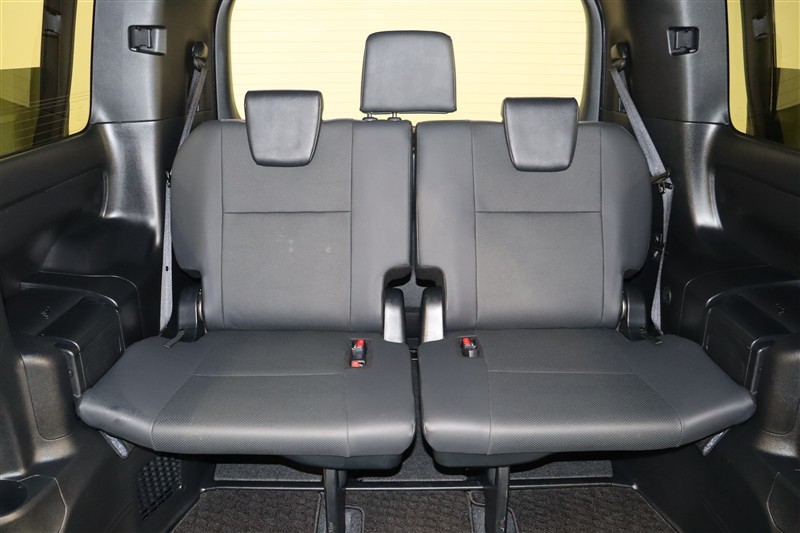 8人乗りの2列目はベンチシートです。後ろに倒した時のシートの広さは8人乗りの魅力のひとつです。中央にも座席がある分、倒したときにフラットで隙間がないのでゆったりと休めますよ。