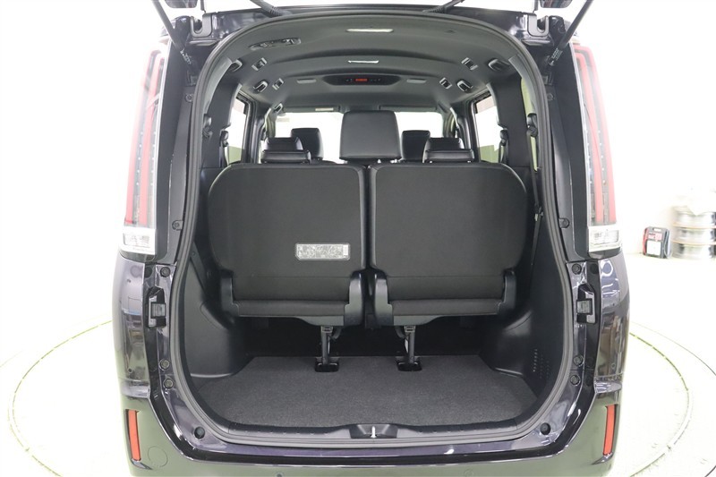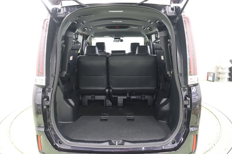 3列目を跳ね上げ格納した状態です。シートがフロアに干渉しないので、荷物を積み込むのもスムーズに出来ます。バックドアはイージークローザー付きです。半ドアを感知したら、静かにキッチリ閉めてくれます・