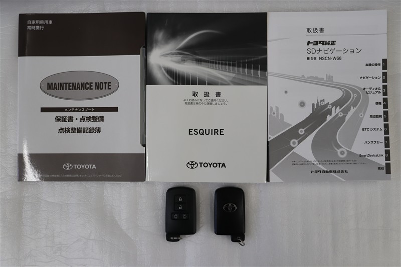 メンテナンスノート、取扱説明書です。メンテナンスノートにはその車の整備記録が事細やかに記録されています。車の履歴が判るとても重要な物です。車検証と一緒に大切に保管してくださいね!
