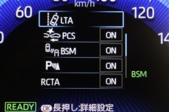 BSMを装備。さらに、後退時車両検知警報【RCTA】を搭載しています。バックで出庫する際に左右から接近する車両を検知し、ミラーのインジケーターの点滅と警報音で警告して安全確認をサポートしてくれます。