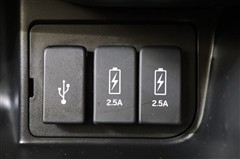 データ通信/給電用と、給電用USBポートが装備されています。車内にあると便利なアイテムのひとつですね! 電源が複数あるとコードを差替える面倒もなく楽ですよ。