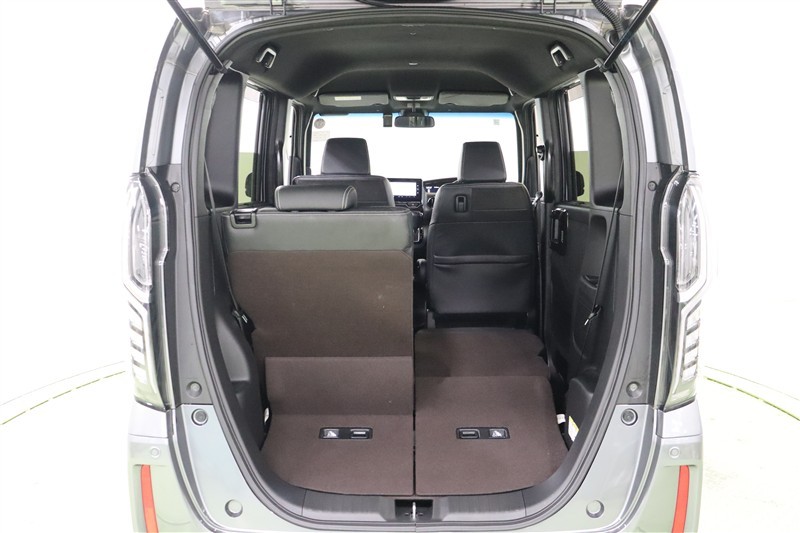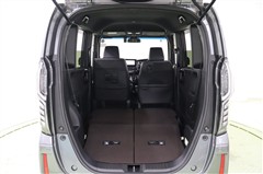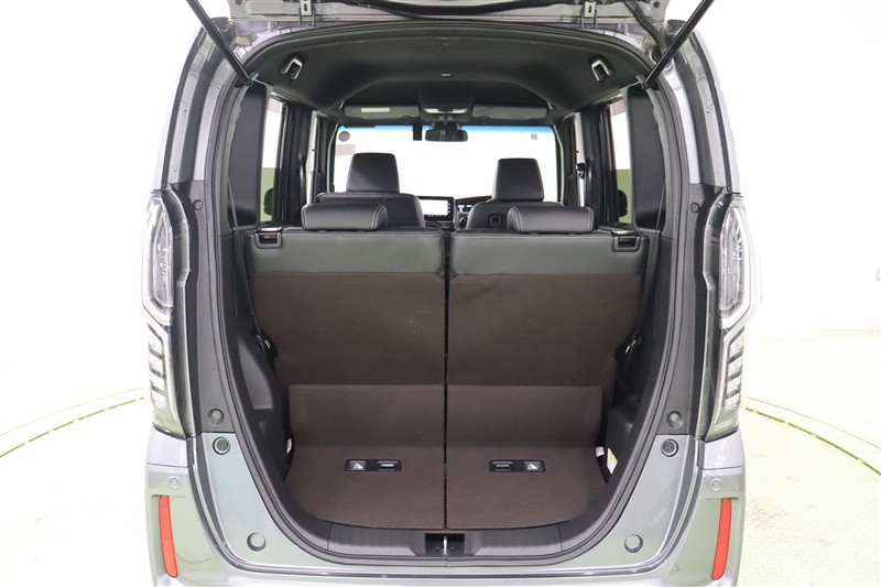 後部座席を畳めば、このようにスッキリ広々としたスペースになります。側面のでっぱりもなく高さもあるので大きな荷物も難なく積み込めます。