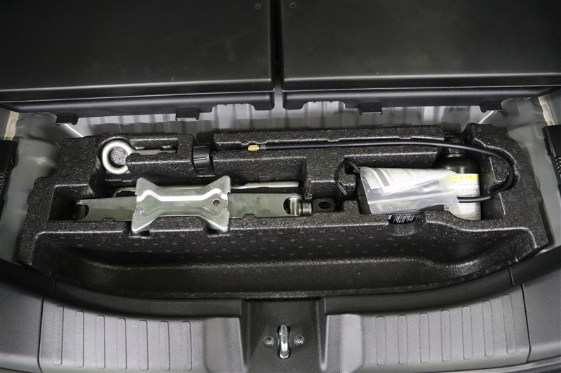ラゲージスペースには床下収納を備えています。洗車用品などを入れておけて便利ですよ。スペース内にパンク修理キットを装備しています。最近は未使用のまま廃棄となるスペアタイヤが多いので、エコですね。