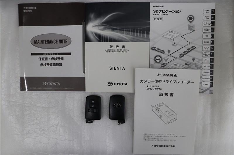 メンテナンスノート、取扱説明書です。メンテナンスノートにはその車の整備記録が事細やかに記録されています。車の履歴が判るとても重要な物です。車検証と一緒に大切に保管してくださいね!