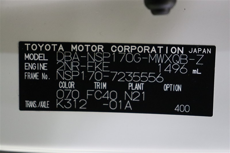 車両型式、フレームナンバーなどを表記したプレートです。最後までご覧いただきましてありがとうございました!ご不明な点などございましたら、お気軽にお問い合わせください。