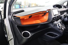 必要なものがシンプルに配置され、広々と視界が広がる運転席まわり。アクセントカラーのオレンジがお洒落です。助手席アッパーボックスの中は一面オレンジです。なかなかインパクトがありますよ。