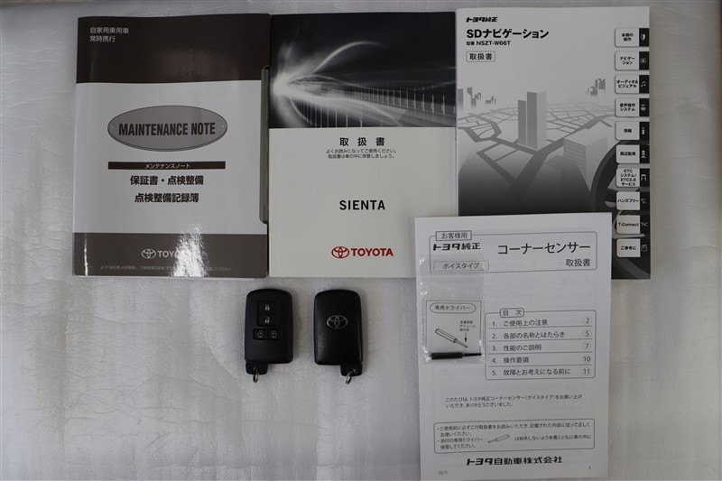 メンテナンスノート、取扱説明書です。メンテナンスノートにはその車の整備記録が事細やかに記録されています。車の履歴が判るとても重要な物です。車検証と一緒に大切に保管してくださいね!