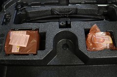 パンク修理キットを装備しています。最近は未使用のままで廃棄となるスペアタイヤが多いので、エコの観点からパンク修理キット付が増えています。軽量化によって燃費の向上にも一役かっているそうです。