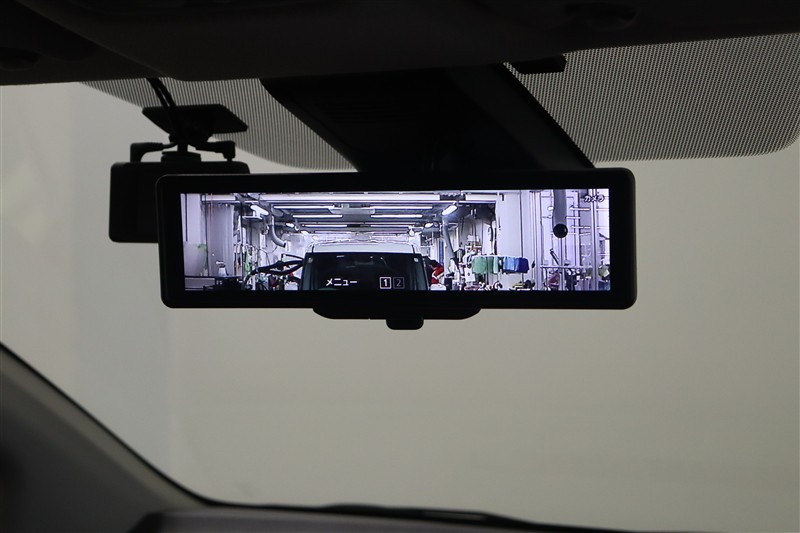 電子インナーミラーです。バックドア内側にカメラを取付けてインナーミラーに後方映像を表示。例えば、後席に大柄の方が座っていても後方確認が難なく出来ます。モニターモードとミラーモードは切替え可能です。
