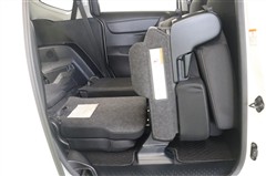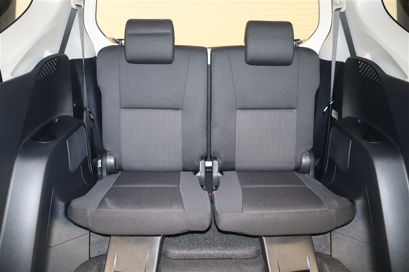 2列目はベンチシートです。タンブル機構付で、ワンタッチで折りたためますので3列目へのアクセスがしやすくなっています。座面がフラットなのでお買い物袋やかばんなどを置いても倒れにくいですよ。