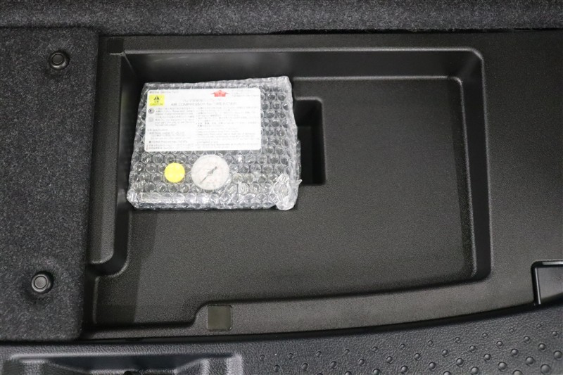 ラゲージスペースには床下収納を装備。洗車用品など細々としたものを収納しておけて便利ですよ。スペース内にはパンク流離キットを装備しています。最近は未使用のまま廃棄となるスペアタイヤが多いので、エコですね