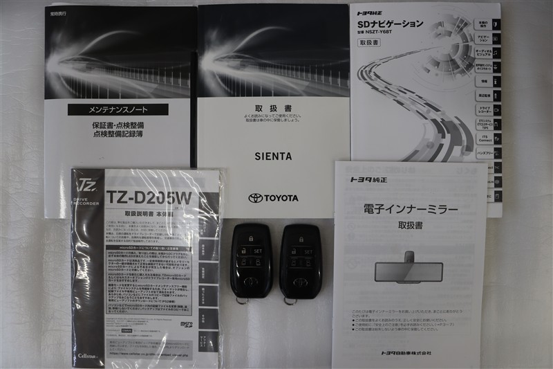 メンテナンスノート、取扱説明書です。メンテナンスノートにはその車の整備記録が事細やかに記録されています。車の履歴が判るとても重要な物です。車検証と一緒に大切に保管してくださいね!