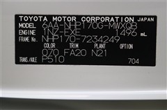 車両型式、フレームナンバーなどを表記したプレートです。最後までご覧いただきましてありがとうございました!ご不明な点などございましたら、お気軽にお問い合わせください。