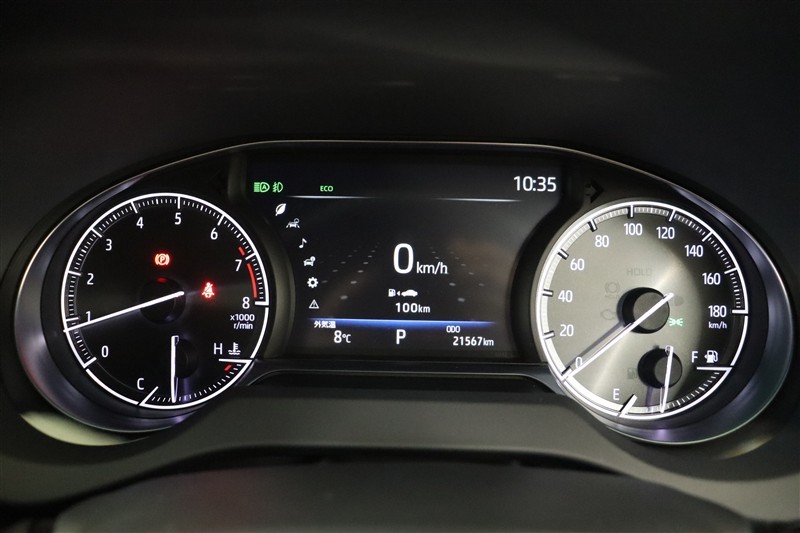 シンプルで視認性の良い2眼メーターです。中央のディスプレイは運転支援システムの作動状況や燃費データなど様々な情報が表示されます。