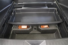 ラゲージスペースの床下にはワイドな収納スペースがあります。上段のトレイはスライド出来るので、下段の荷物も取り出しやすくなっています。トレイは取り外して丸洗いできるので便利ですよ。