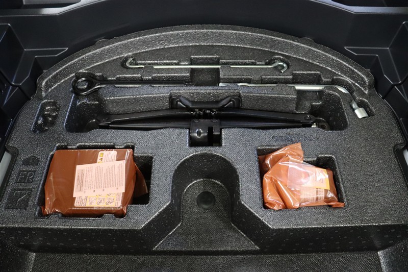 下段の収納スペース内にパンク修理キットを装備しています。最近は未使用のまま廃棄となるスペアタイヤが多いので、エコですね。。軽量化によって燃費の向上にも一役かっているそうです。