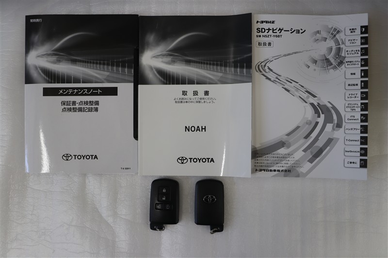 メンテナンスノート、取扱説明書です。メンテナンスノートにはその車の整備記録が事細やかに記録されています。車の履歴が判るとても重要な物です。車検証と一緒に大切に保管してくださいね!