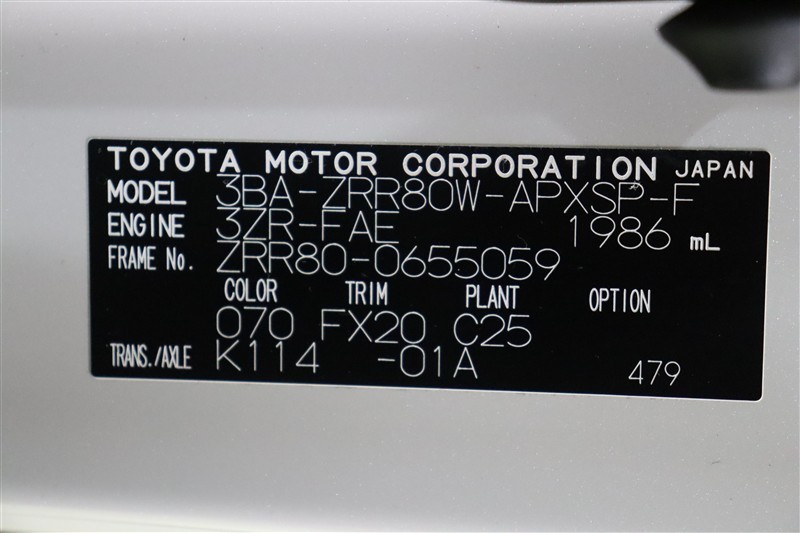 車両型式、フレームナンバーなどを表記したプレートです。最後までご覧いただきましてありがとうございました!ご不明な点などございましたら、お気軽にお問い合わせください。