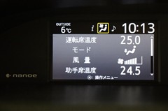 デザイン性の高いエアコンパネルはプッシュ式。左右独立の温度設定が出来るので席による温度差も解消できて快適です。ナノイー搭載ですので、肌や髪に優しいナノイーが車内を爽やかな空気環境にしてくれます。
