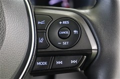 追従機能付クルーズコントロール搭載。アクセルを踏み続けなくてもセットした一定速度を維持。また、渋滞などで先行車が停止した場合停止し、先行車が再発進するとドライバー操作で発進した後に追従走行を再開します