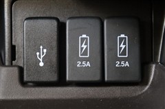 データ転送/給電用と、給電用のUSBポートが装備されています。iPhoneやスマートフォンを繋いで音楽を再生したり、充電したり。車内にあると便利なアイテムのひとつですね!