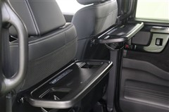シートバックにはドリンクホルダー付テーブルを装備。車内でランチやお菓子も置く場所に困りません。上部と下部にはポケットを装備。大きさが大小あるのでスマホやタブレット、雑誌などが整理して収納できます。