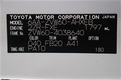 車両型式、フレームナンバーなどを表記したプレートです。最後までご覧いただきましてありがとうございました!ご不明な点などございましたら、お気軽にお問い合わせください。