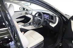 黒基調×フロマージュとカッパーのアクセントがラグジュアリーさを漂わせるステアリング廻り。ディスプレイやメーター、操作機器が水平に集約され、迷うことなく直観的に運転できるデザインはさすがクラウンです。