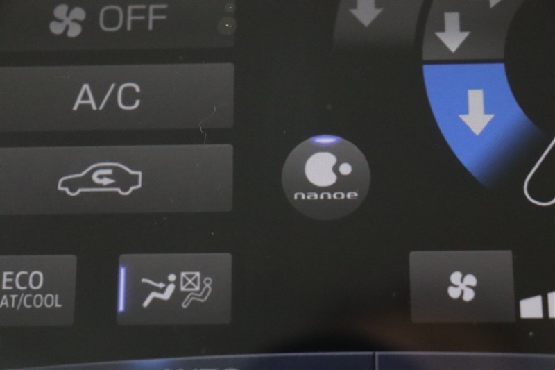 ナノイー搭載車です。ナノイーを選んでおくと、消臭効果があり、肌や髪にやさしい水に包まれた弱酸性のナノイーがエアコンの吹き出し口から放出されて室内を爽やかな空気環境にしてくれます。
