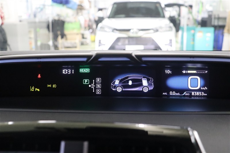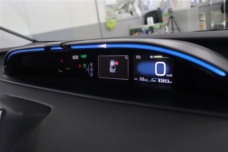 【ドライブサポートイルミネーション】を装備しています。メーターフードの上部に柔らかく光るLEDがシフト位置やHVシステムインジケータの状態などを色と点滅で知らせてくれます。視感的にも華やかですよ。