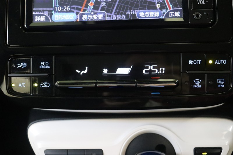 エアコンの温度や風量の調整、吹き出し口の切替えはバーの上下操作です。シンプルで直感的に操作できるデザインです。