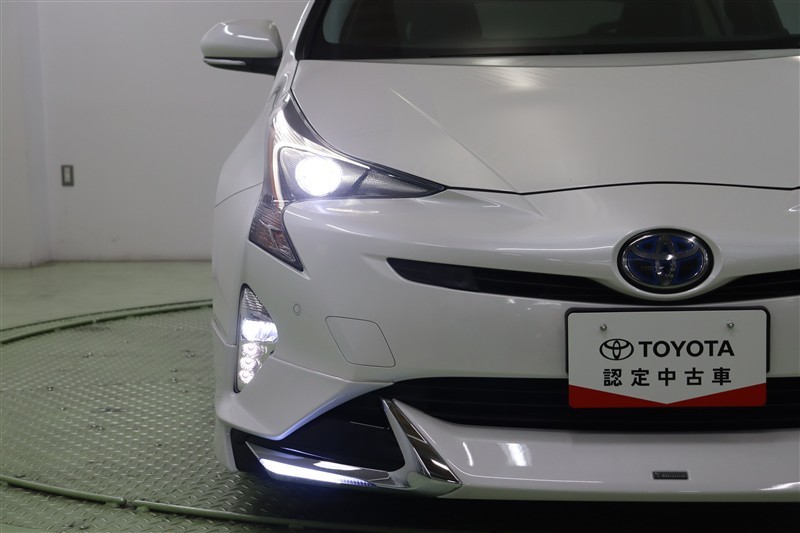 プリウスの特徴あるシャープな切れ長ヘッドライトはLEDです。前方の明るさを感知し、自動で切替わるオートハイビームを搭載しているので、面倒なライトの切替えは不要です。