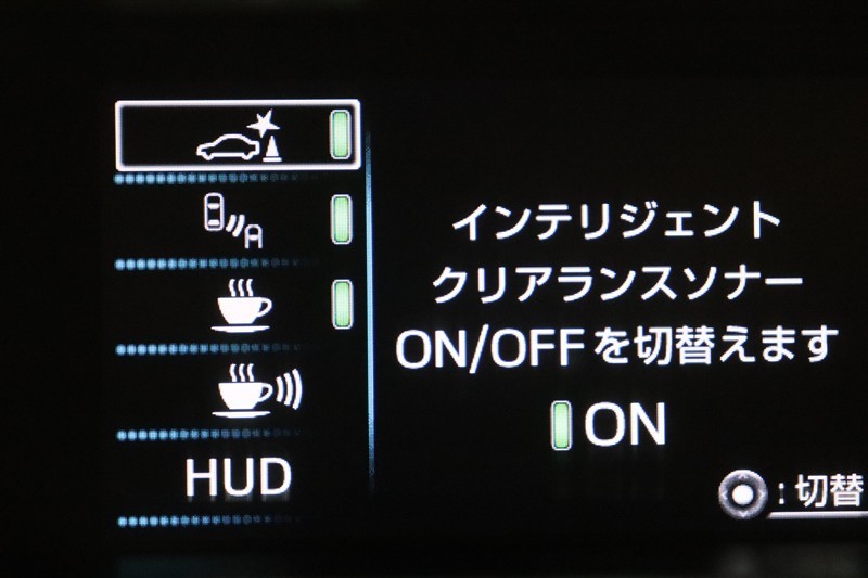 ヘッドアップディスプレイ(HUD)です。運転に必要な情報をフロントガラスの視野内に投影することで視線を外さず確認できます。視線移動や焦点調節が少なくて済むので安全性の向上に貢献します。