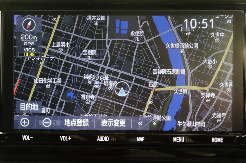 純正9インチSDナビ。CD・DVD・SD・高画質で鮮明な映像が楽しめるフルセグTV対応です。ナビ連動のETCを装着しています。利用日や料金の確認がモニターで出来て便利ですよ。