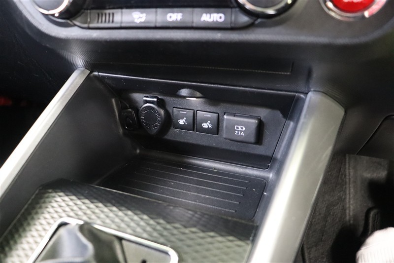 赤いパイピングのアクセントがお洒落で、ホールド感のあるシートは通気性がよく蒸れにくいモケットです。運転席と助手席には寒い時期に嬉しいシートヒーターを装備。はやく暖まり、じんわりと身体を温めてくれます。