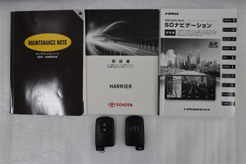 メンテナンスノート、取扱説明書です。メンテナンスノートにはその車の整備記録が事細やかに記録されています。車の履歴が判るとても重要な物です。車検証と一緒に大切に保管してくださいね!