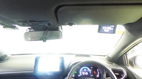 ヘッドアップディスプレイ(HUD)です。運転に必要な情報をフロントガラスの視野内に投影することで視線を外さず確認できます。視線移動や焦点調節が少なくて済むので安全性の向上に貢献します。