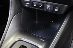 データ通信/給電用と、給電用のUSBポート(Type-C)が装備されています。車内にあると便利なアイテムですね! 充電中のスマホなどの置き場にちょうど便利なフロントコンソールボックスを備えています。